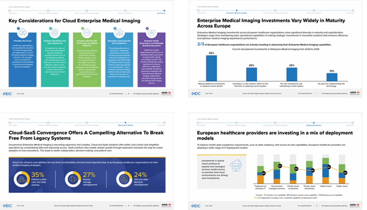 This IDC InfoBrief offers insights into cloud enterprise medical imaging. Using data from the IDC US Healthcare Provider IT Survey and Worldwide Industry CloudPath Survey, it analyzes industry trends, challenges, and opportunities.
